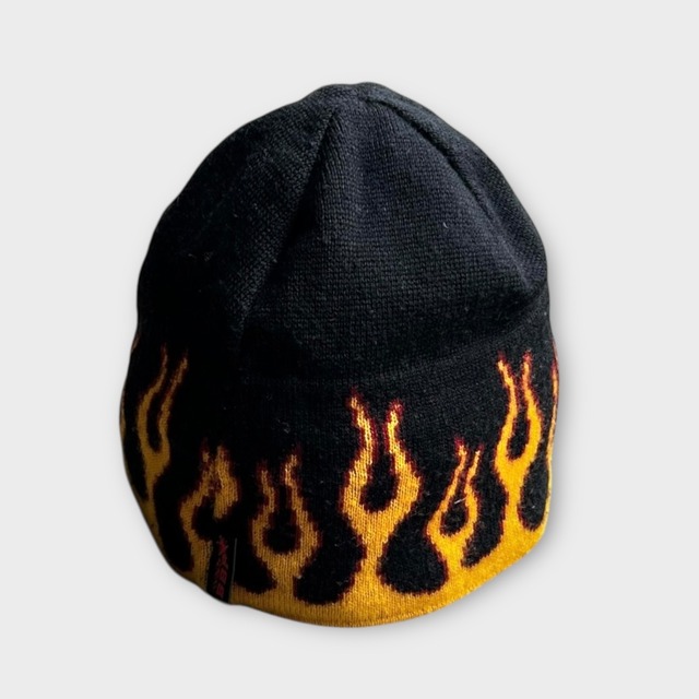 結構使い勝手の良い ファイヤーパターンの ニット帽。 コンパクトなサイズ感で 多系統でバランスの取れる 意外と合わせやすい帽子です。 【Color】 black 【Size】 FREE 【Material】 COTTON 【Condition】 rank B 一般的な古着のコンディション