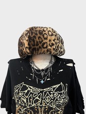 CA4LA fake fur leopard reversible beret