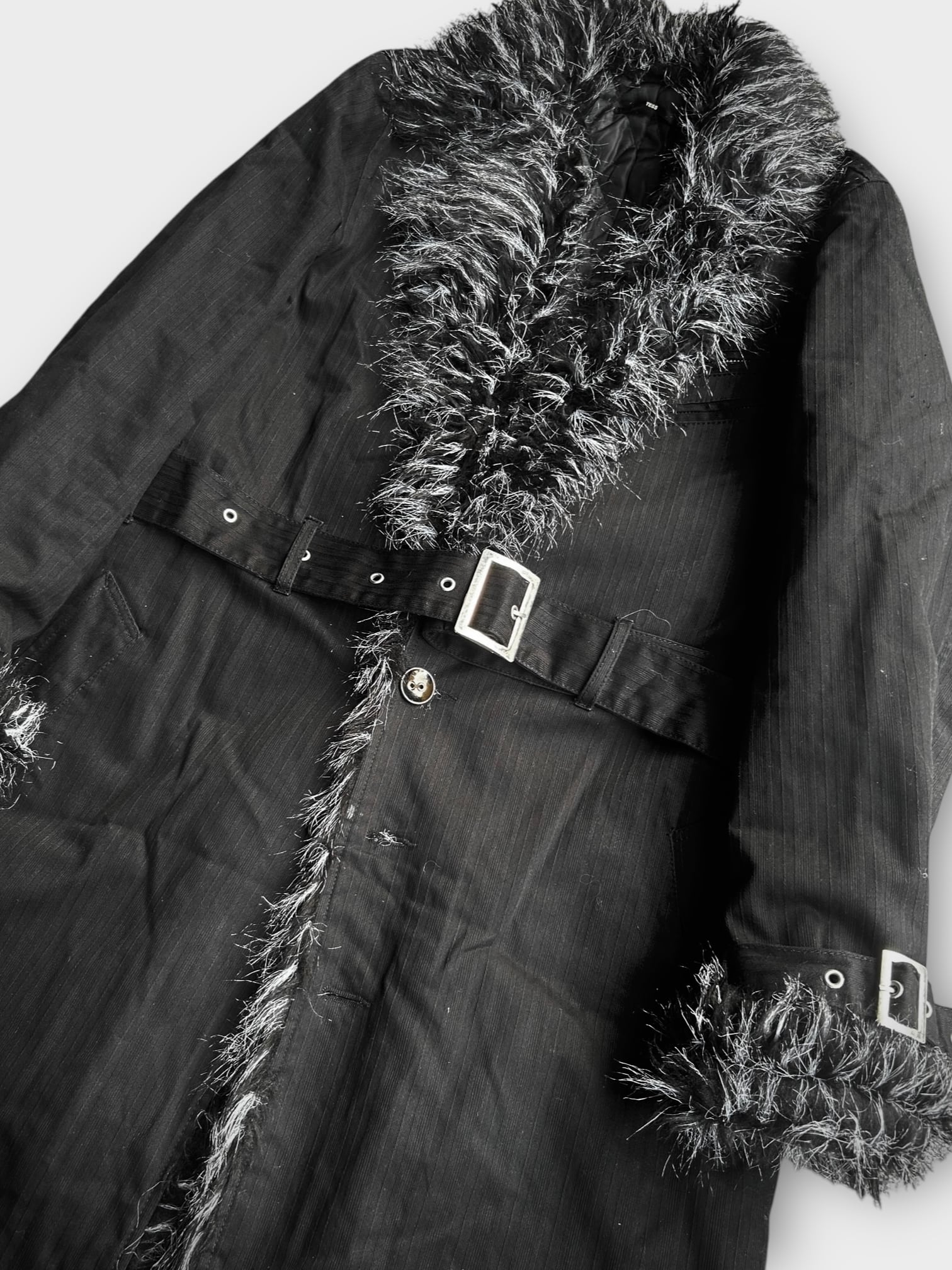 00s stripe textile fur coat