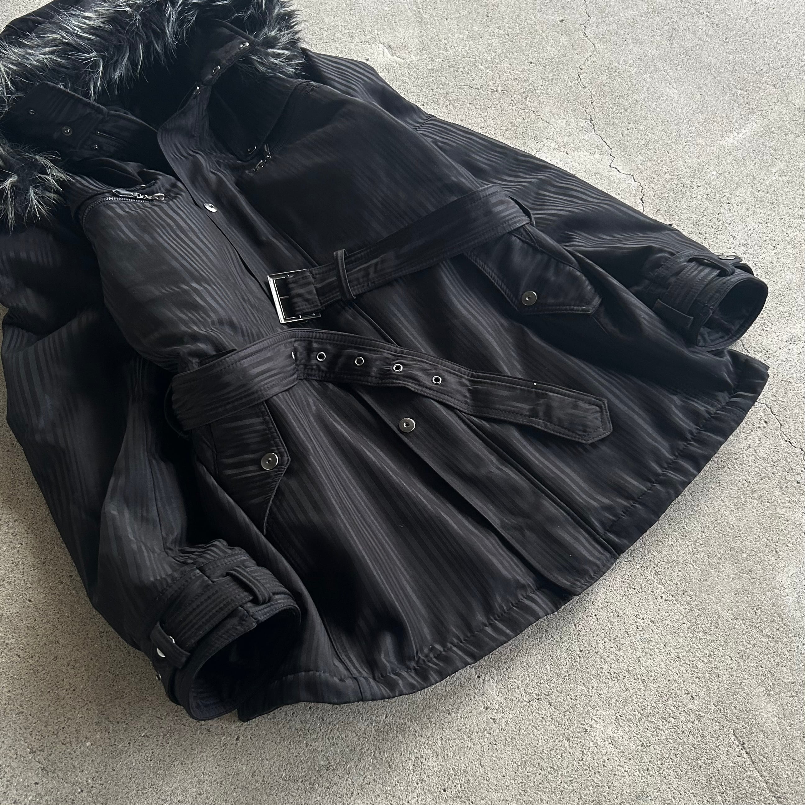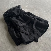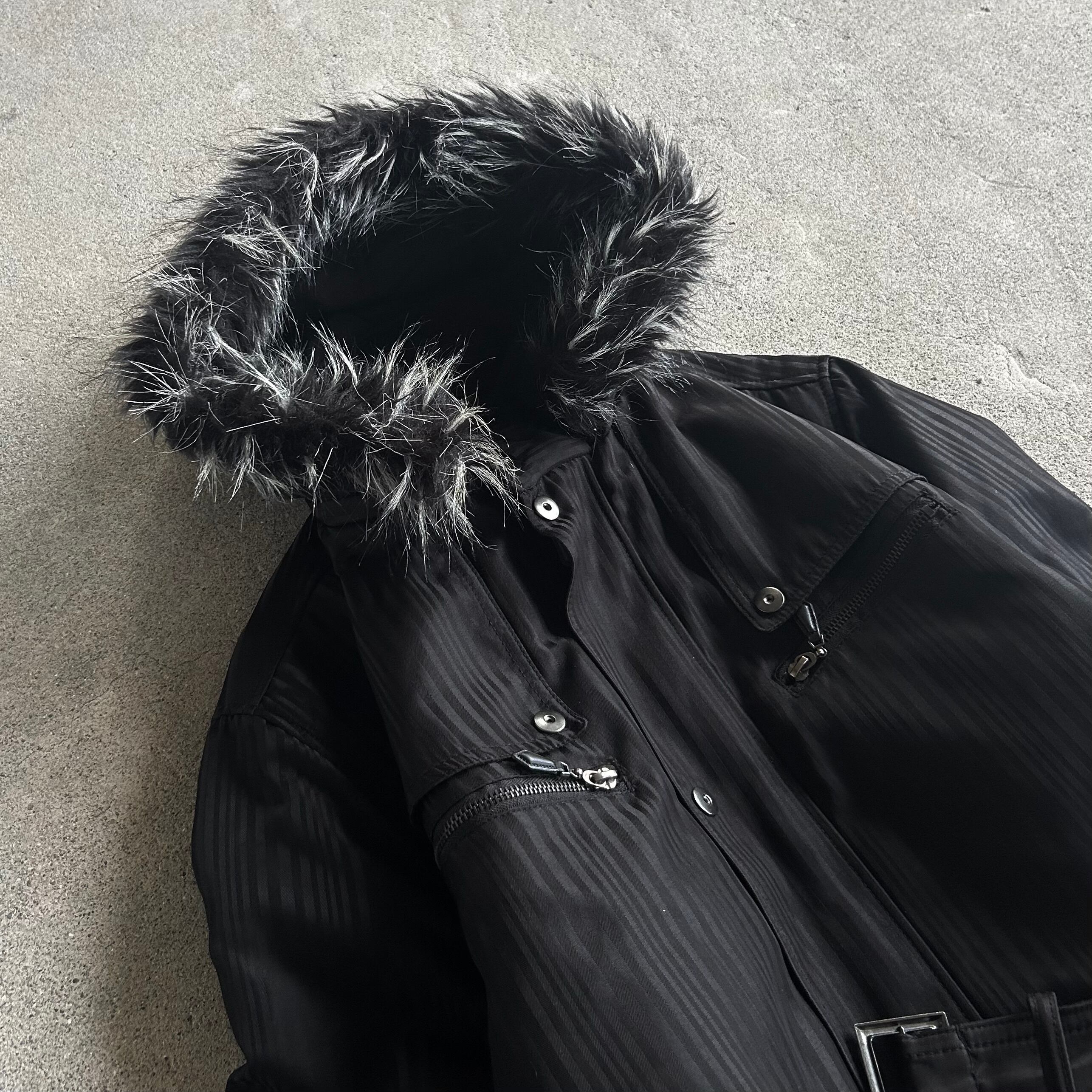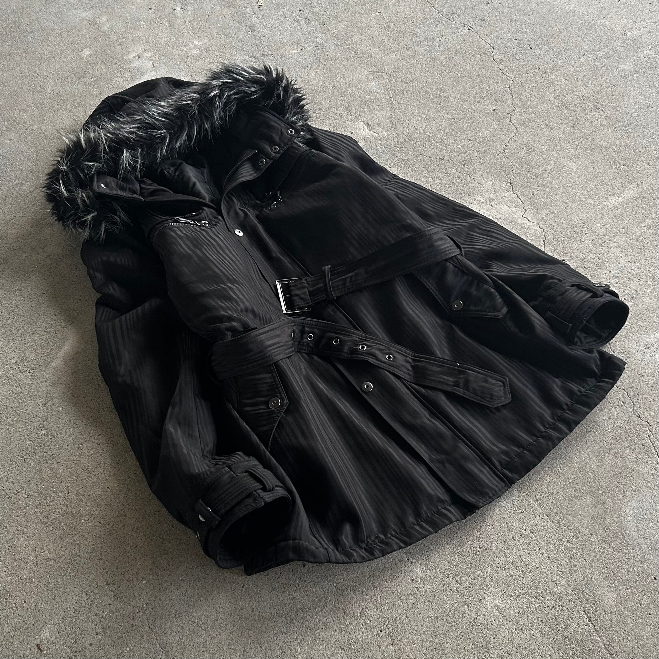 00’s Belted Fur Hooded Black Coat