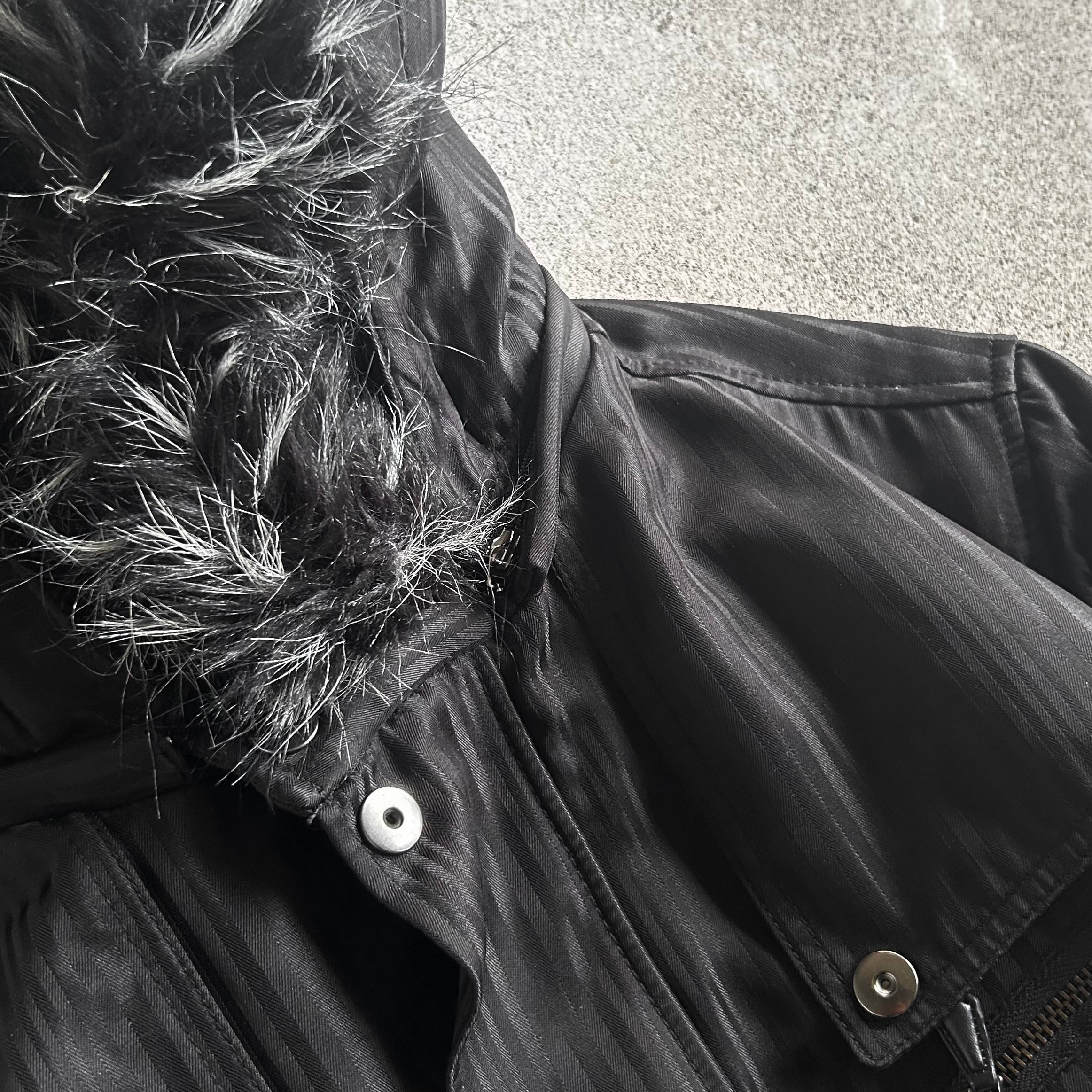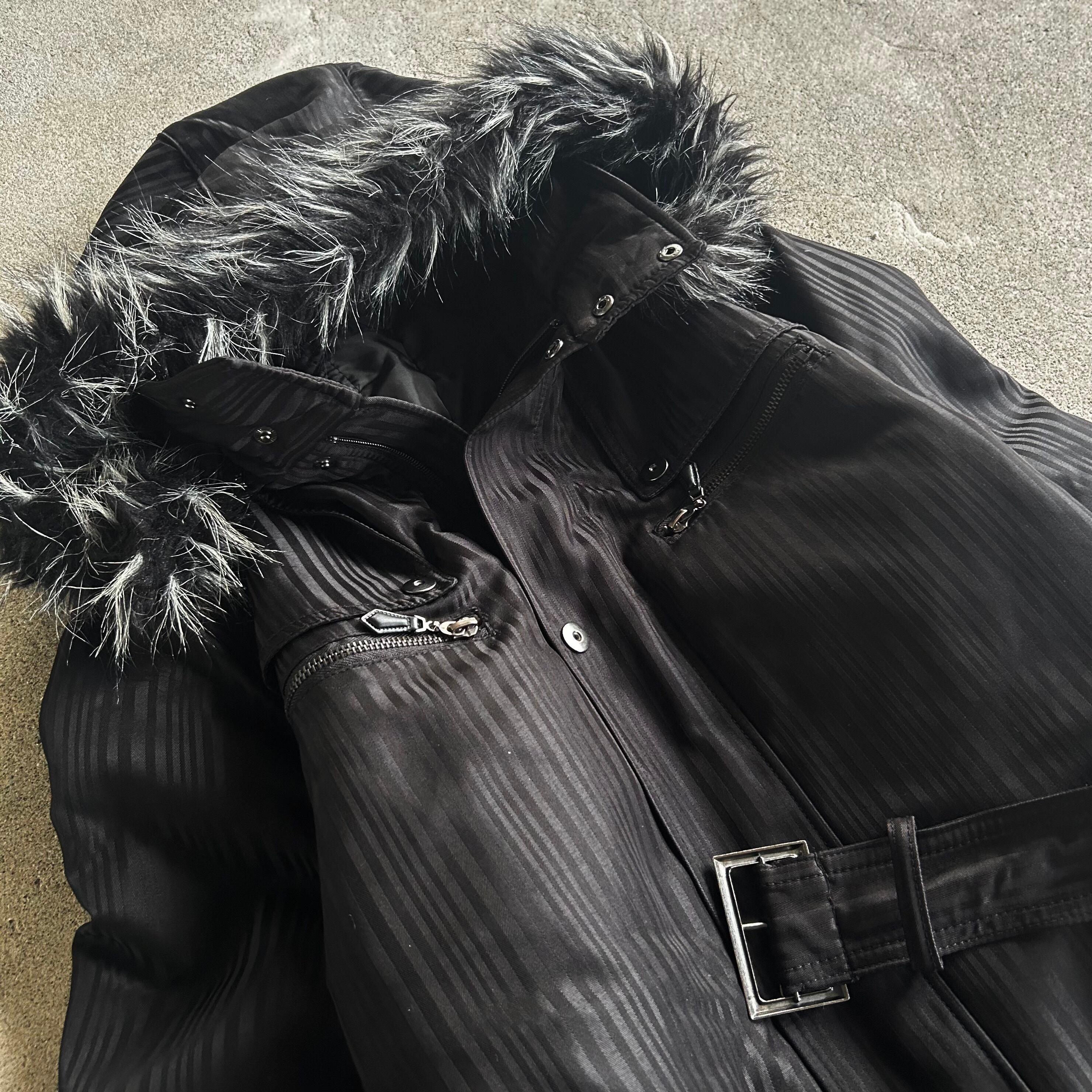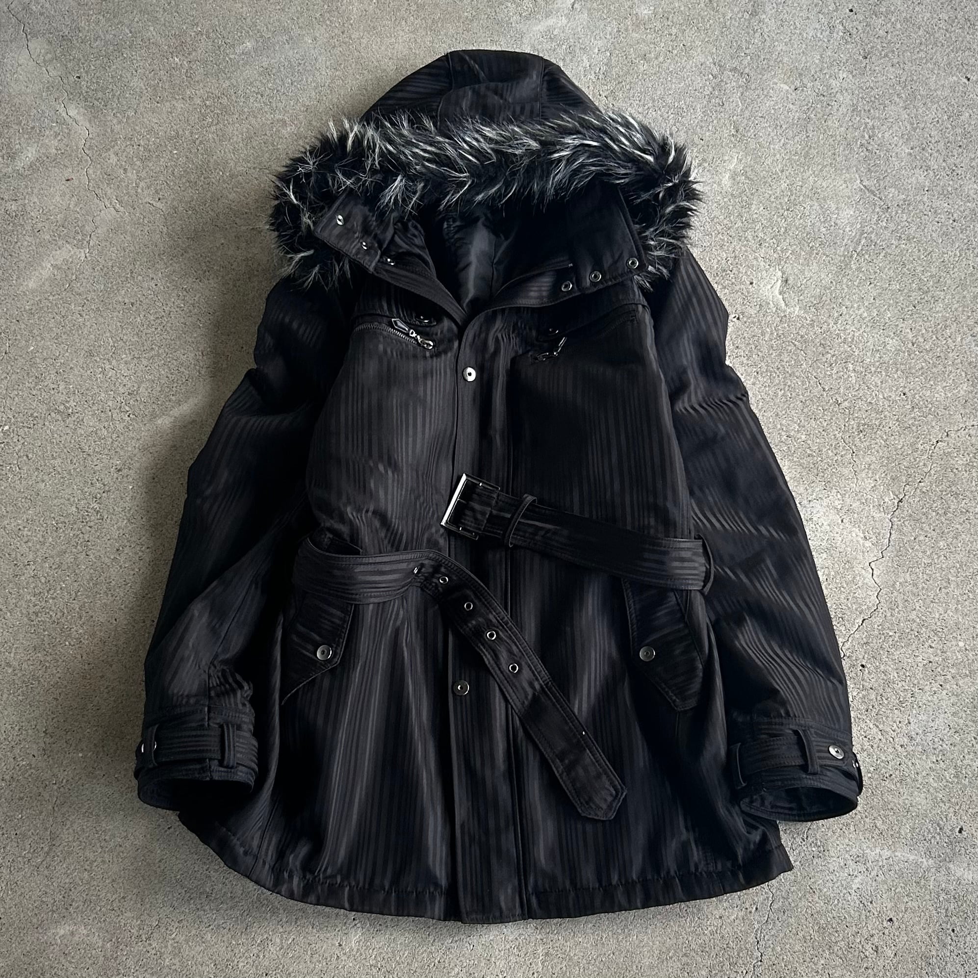 00’s Belted Fur Hooded Black Coat
