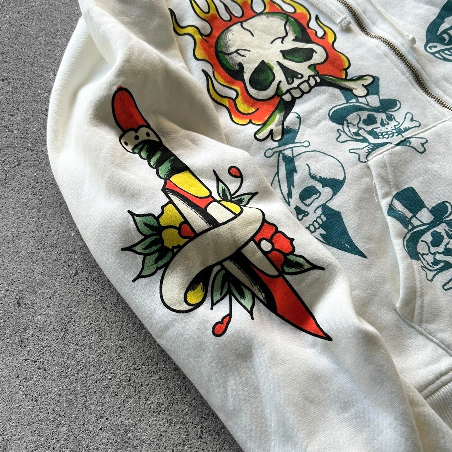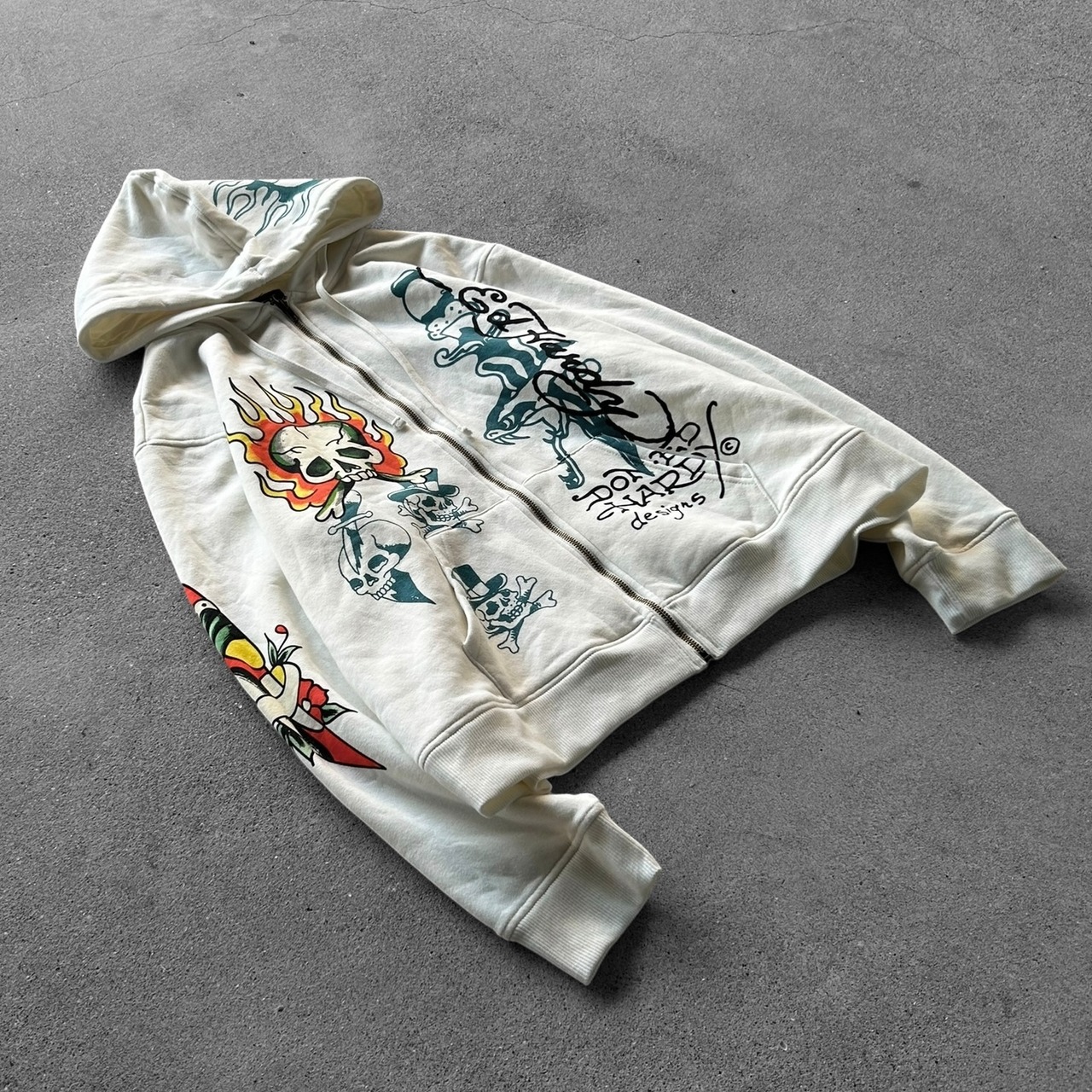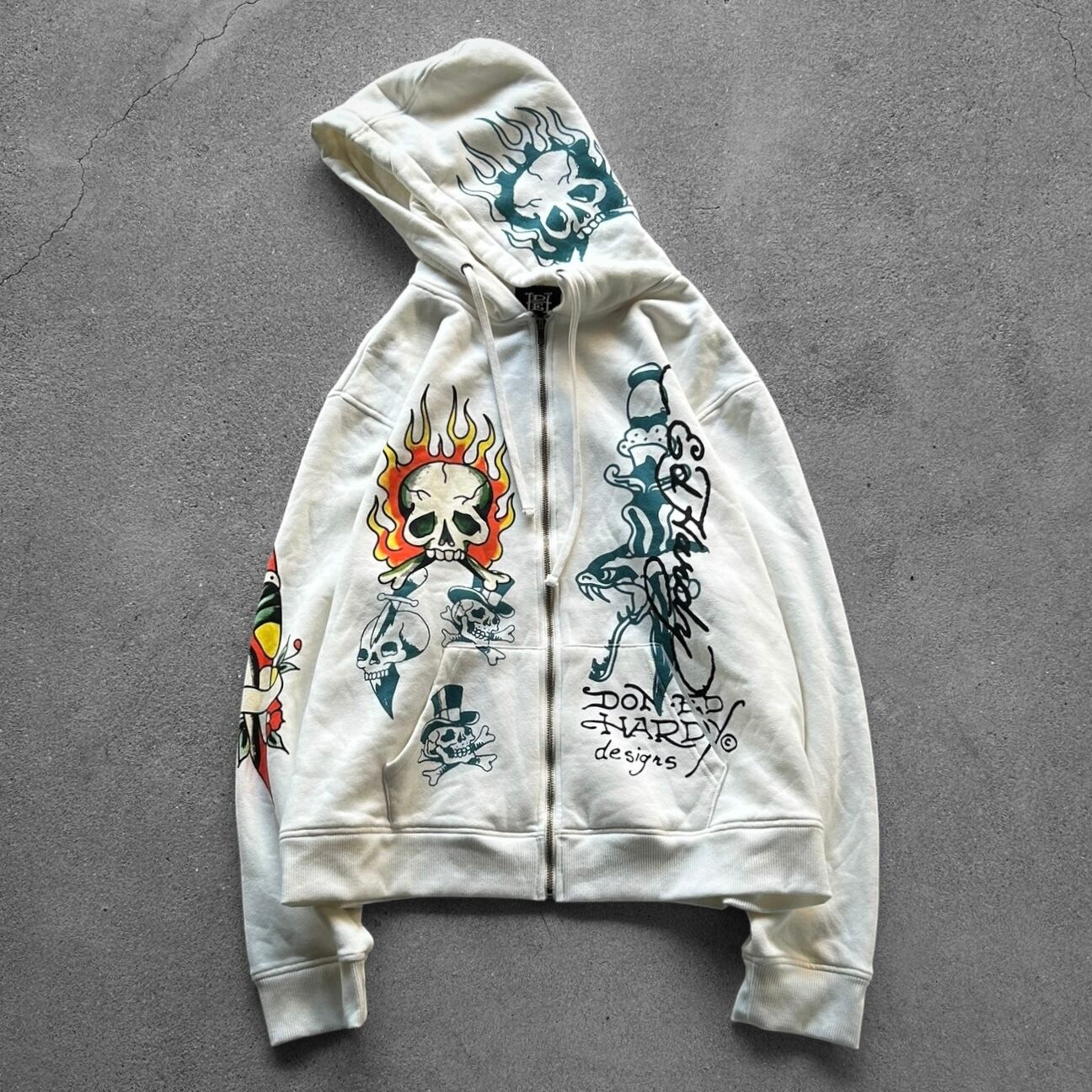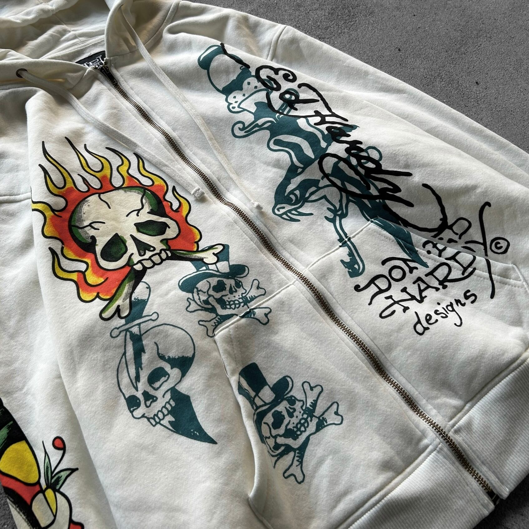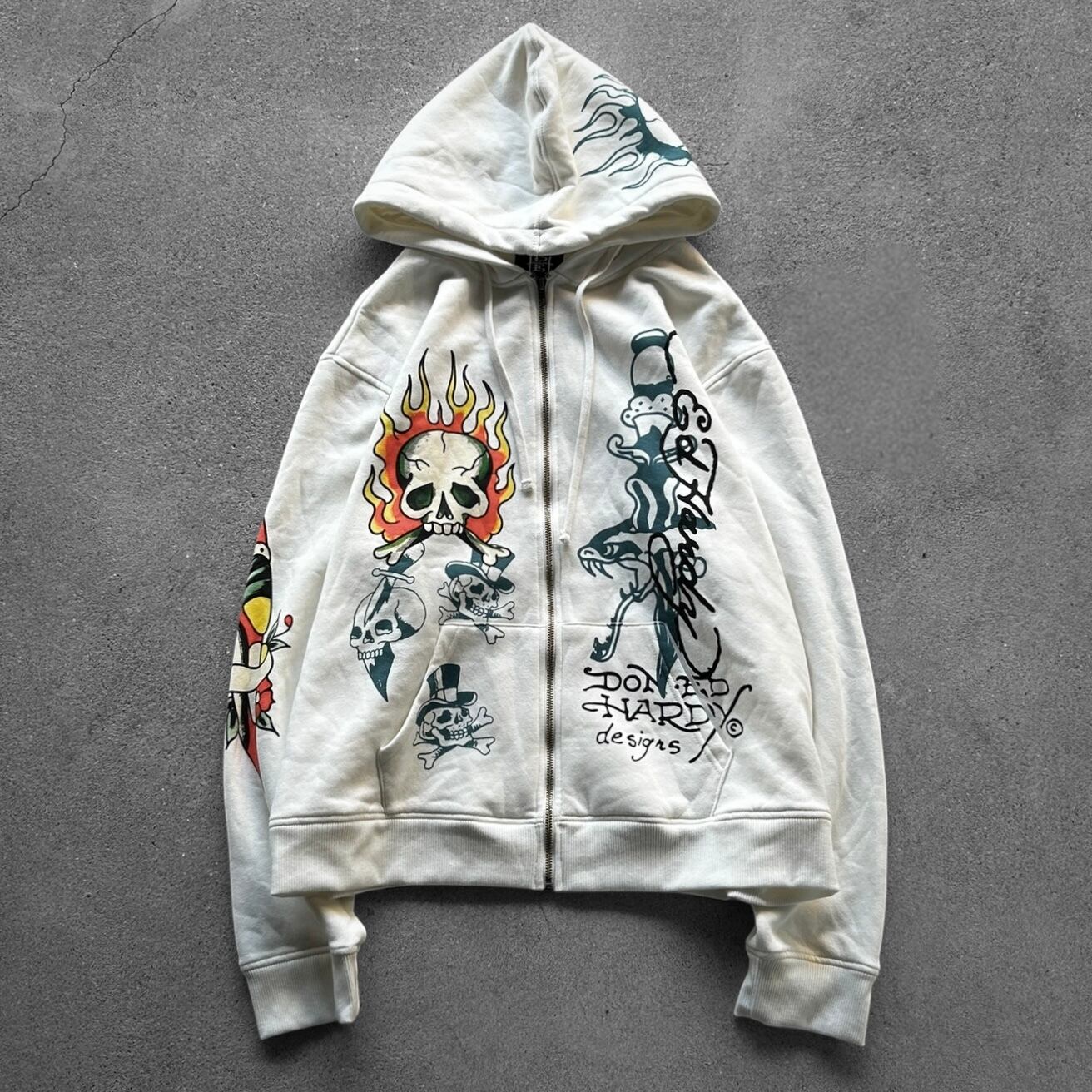 Ed Hardy Flame Skull Tattoo Zip Hoodie