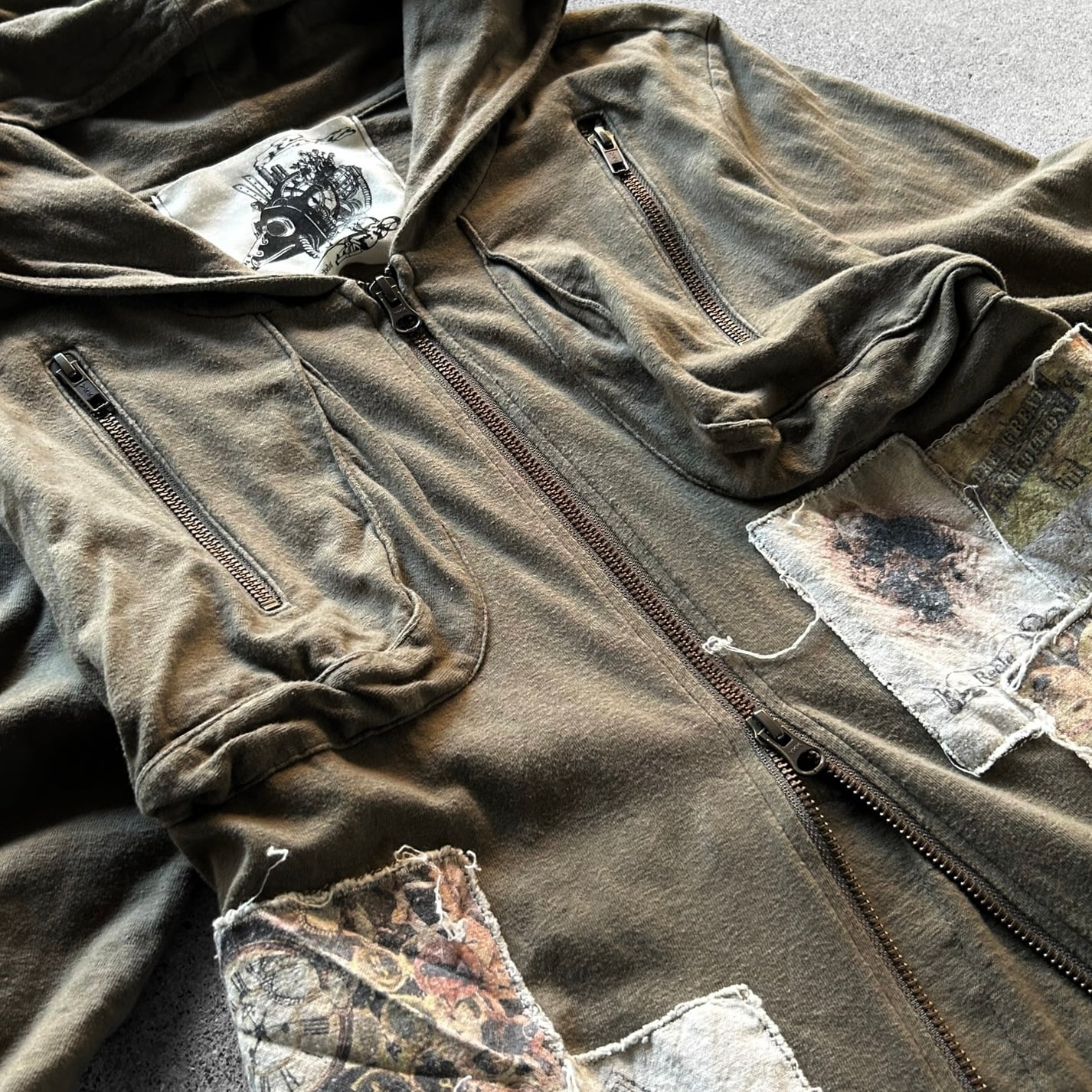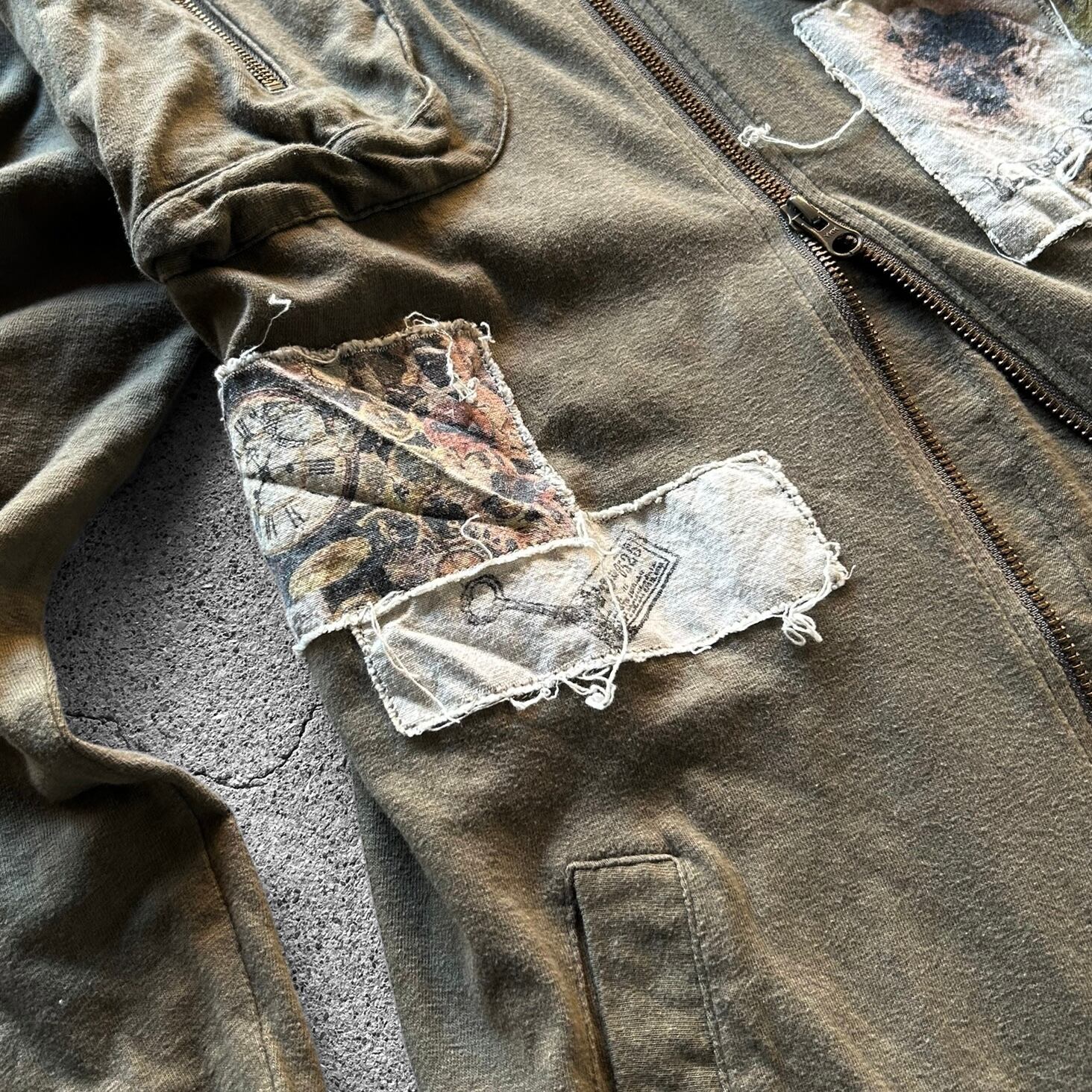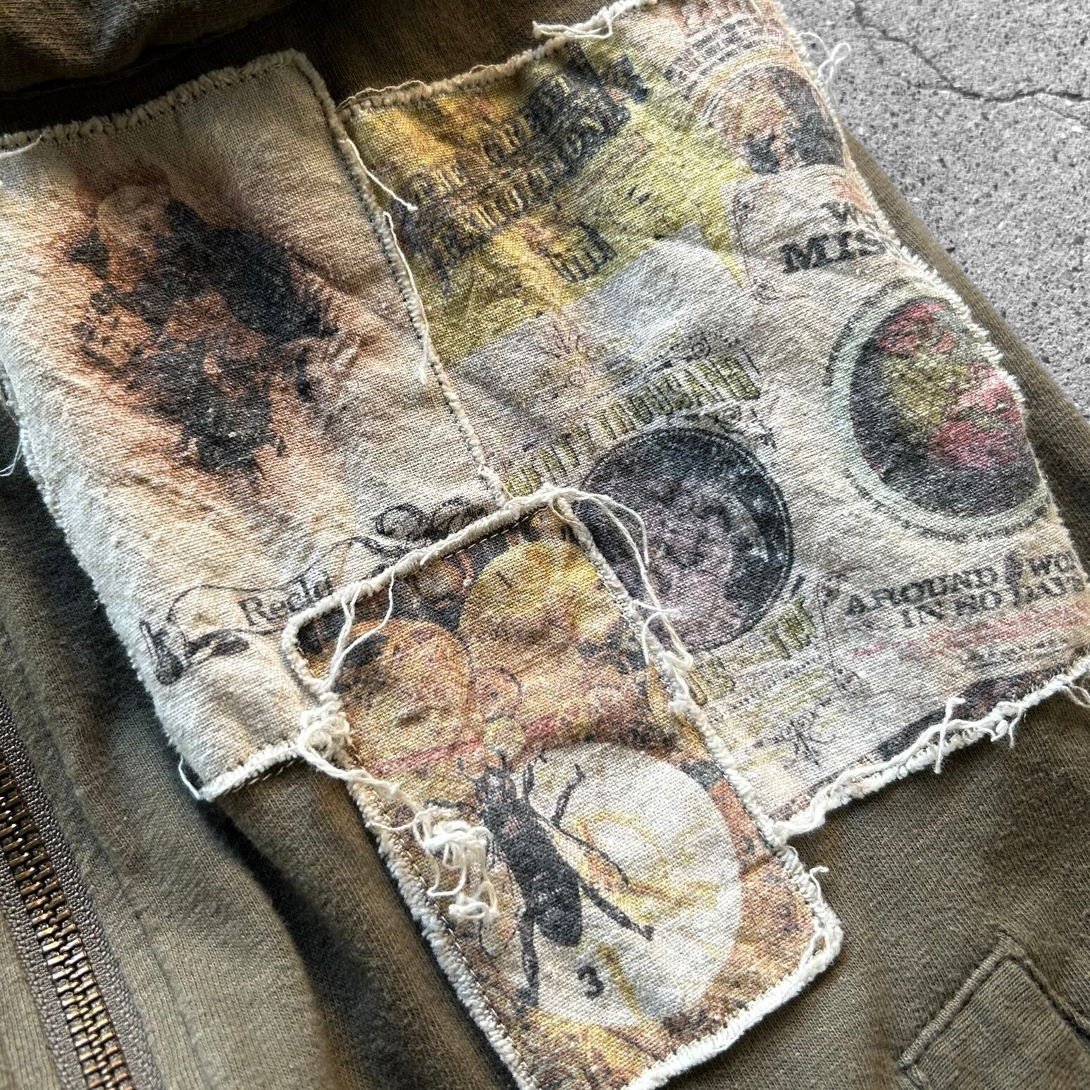 00’s Distressed Art Patch Cross Zip Hoodie