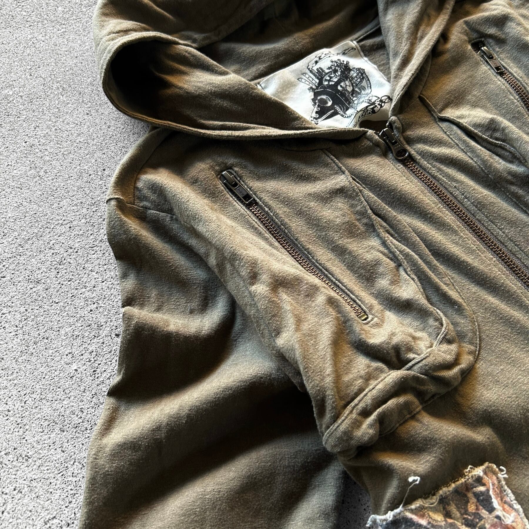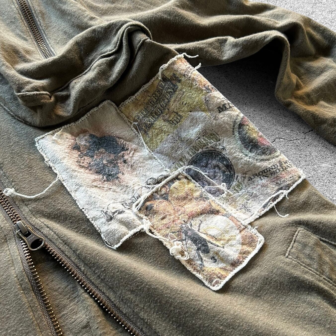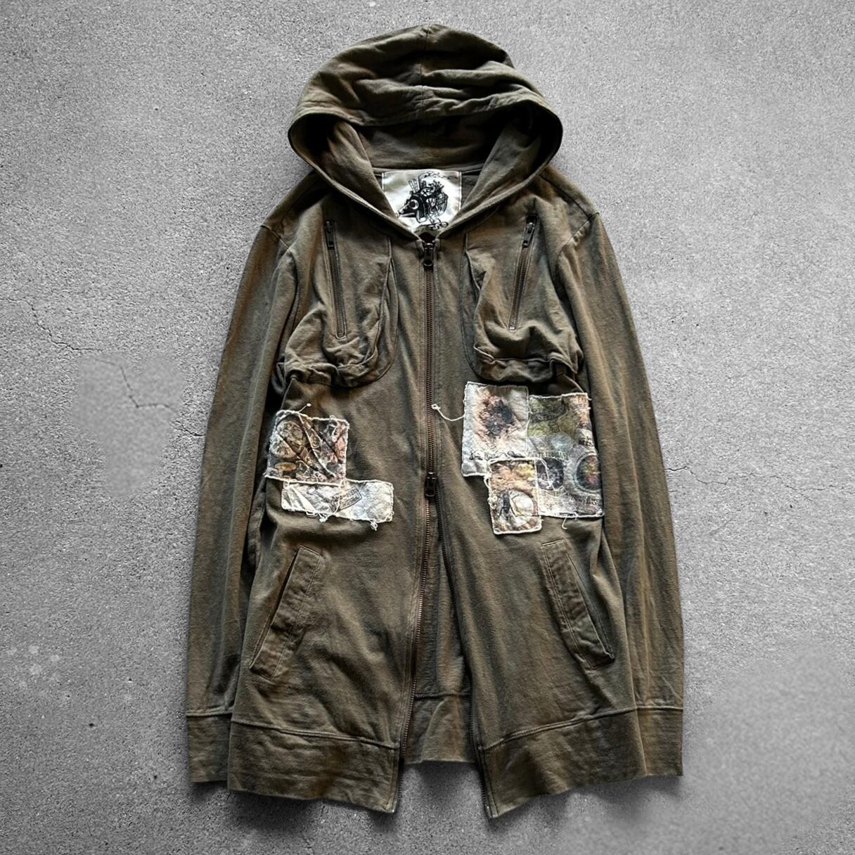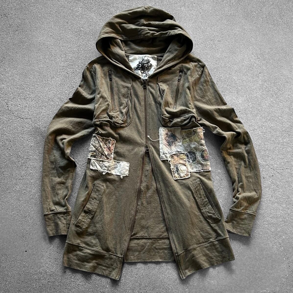 00’s Distressed Art Patch Cross Zip Hoodie