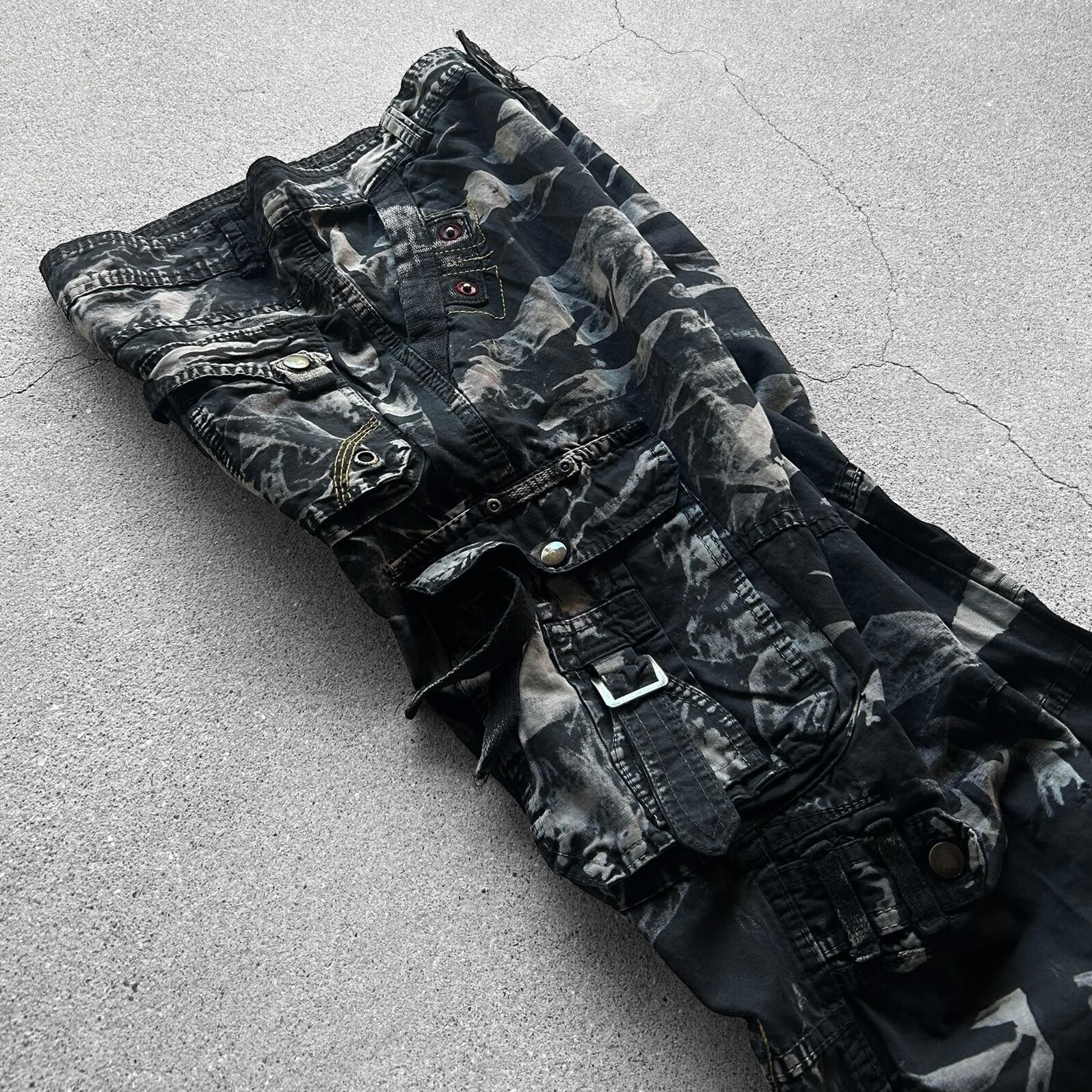00’s Industrial Gimmick Dark Camo Cargo Pants