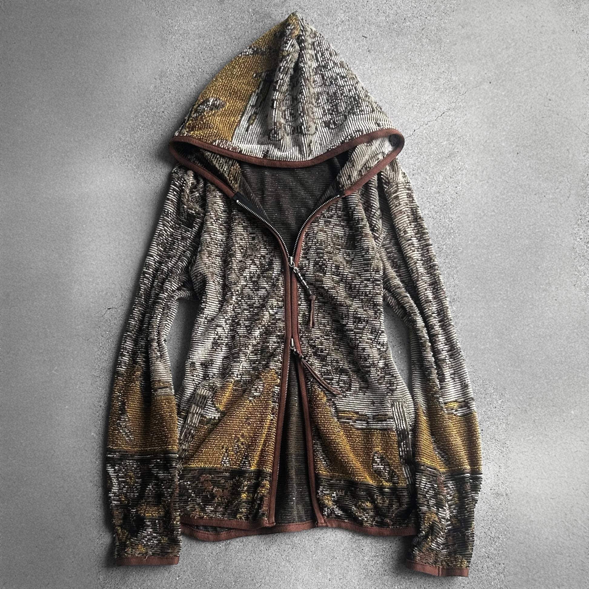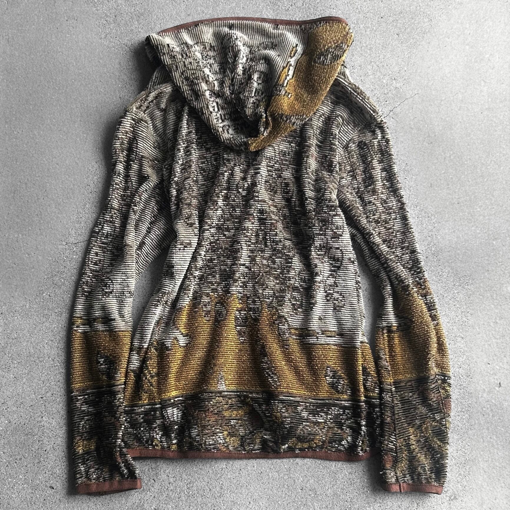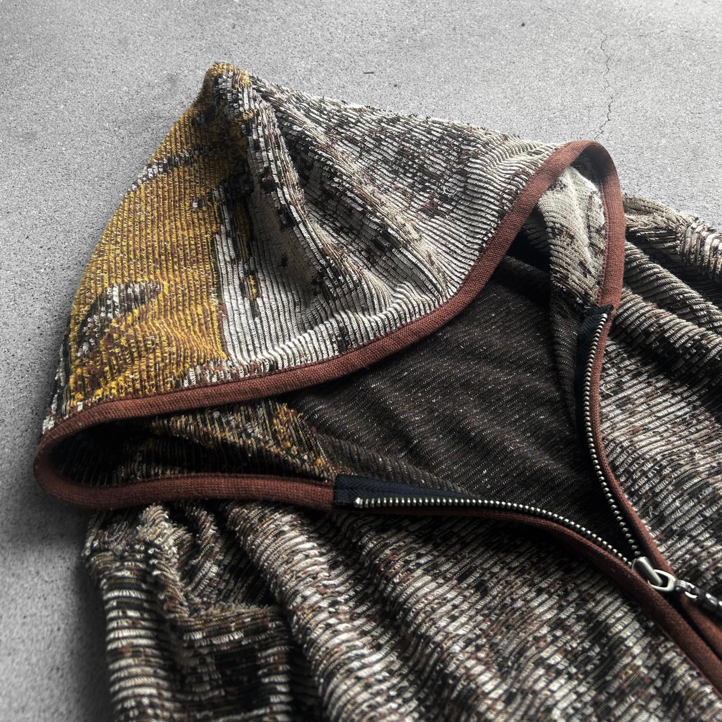 Earth Tone Abstract Skull Jacquard Zip Hoodie