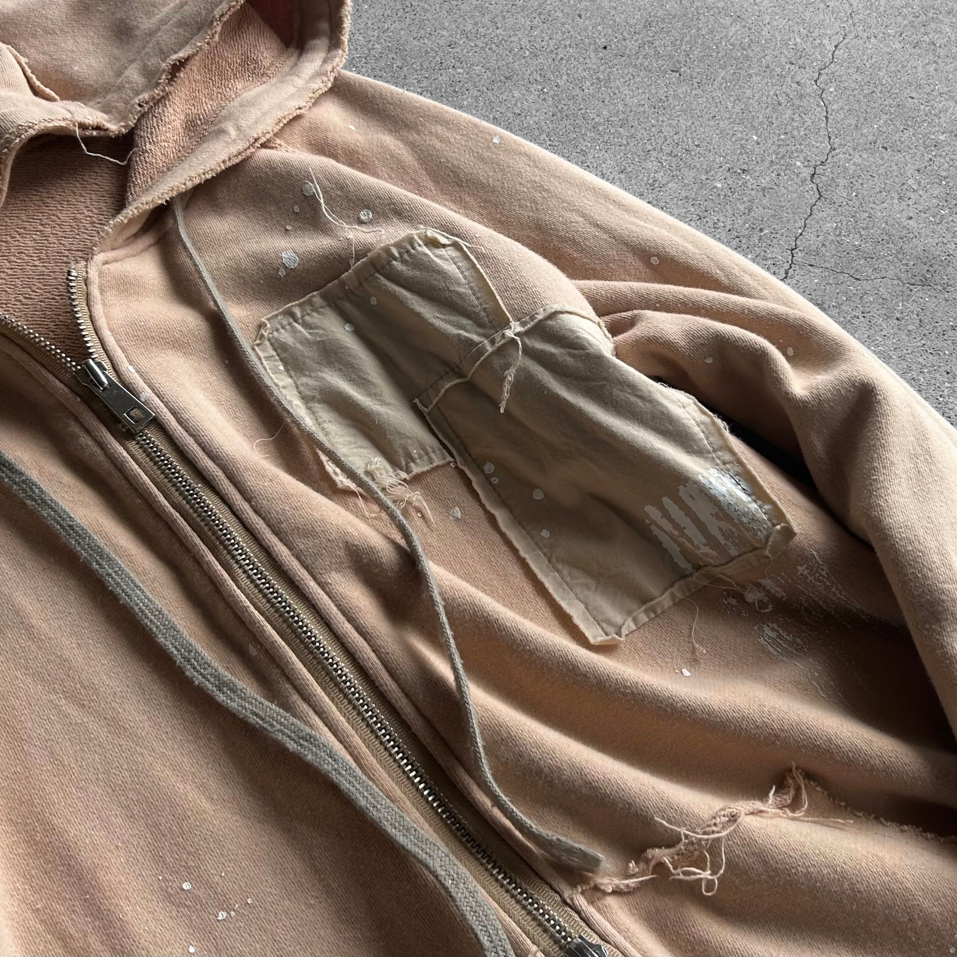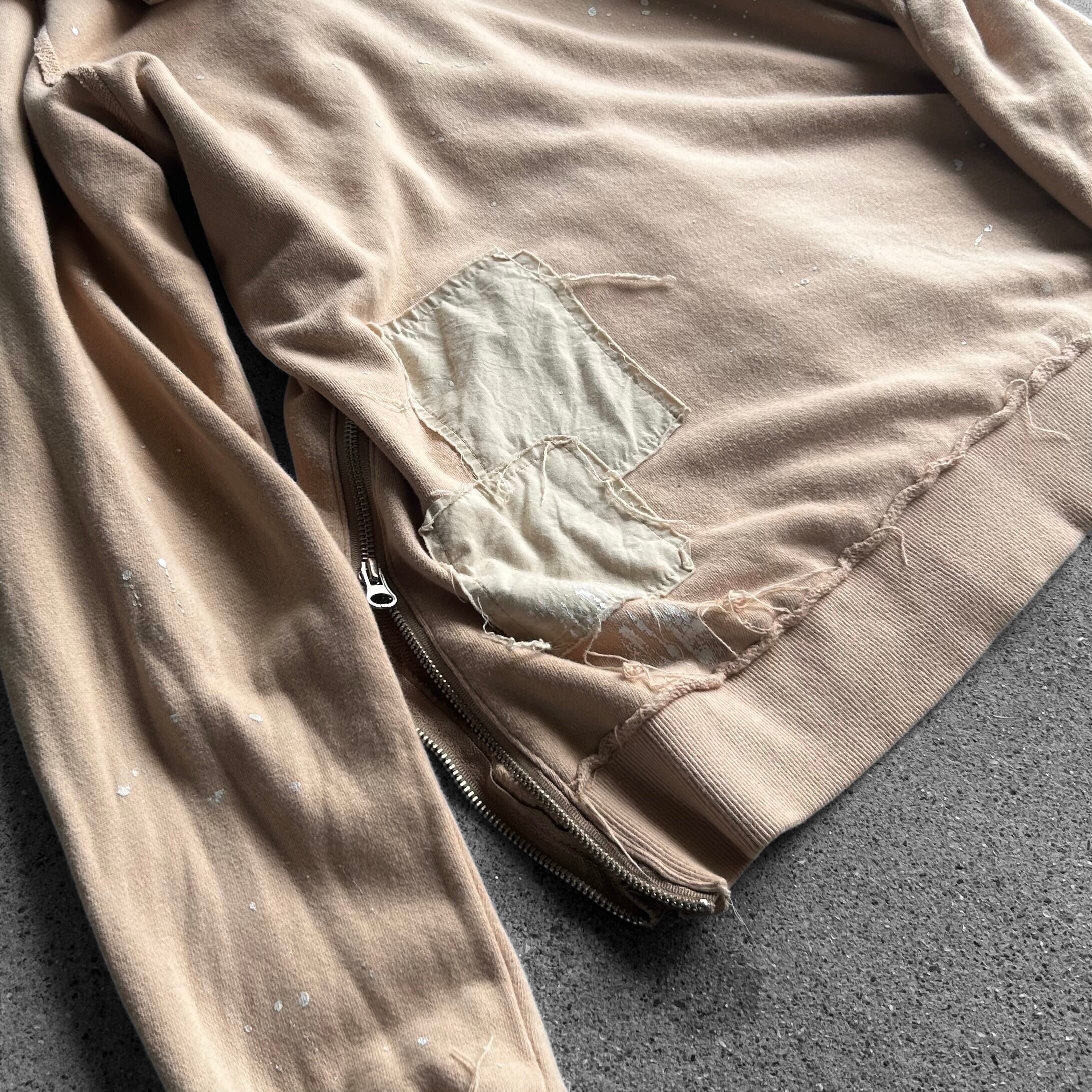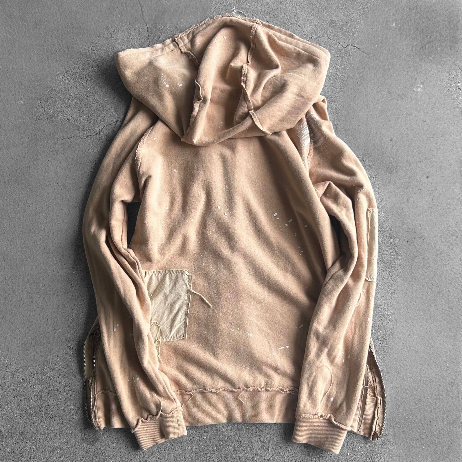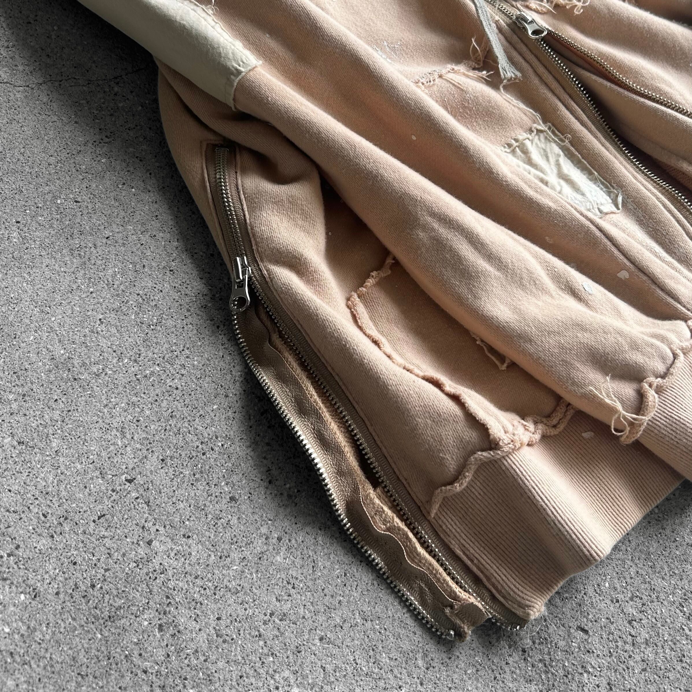 Distressed Repaired Patchwork Side Zip Hoodie
