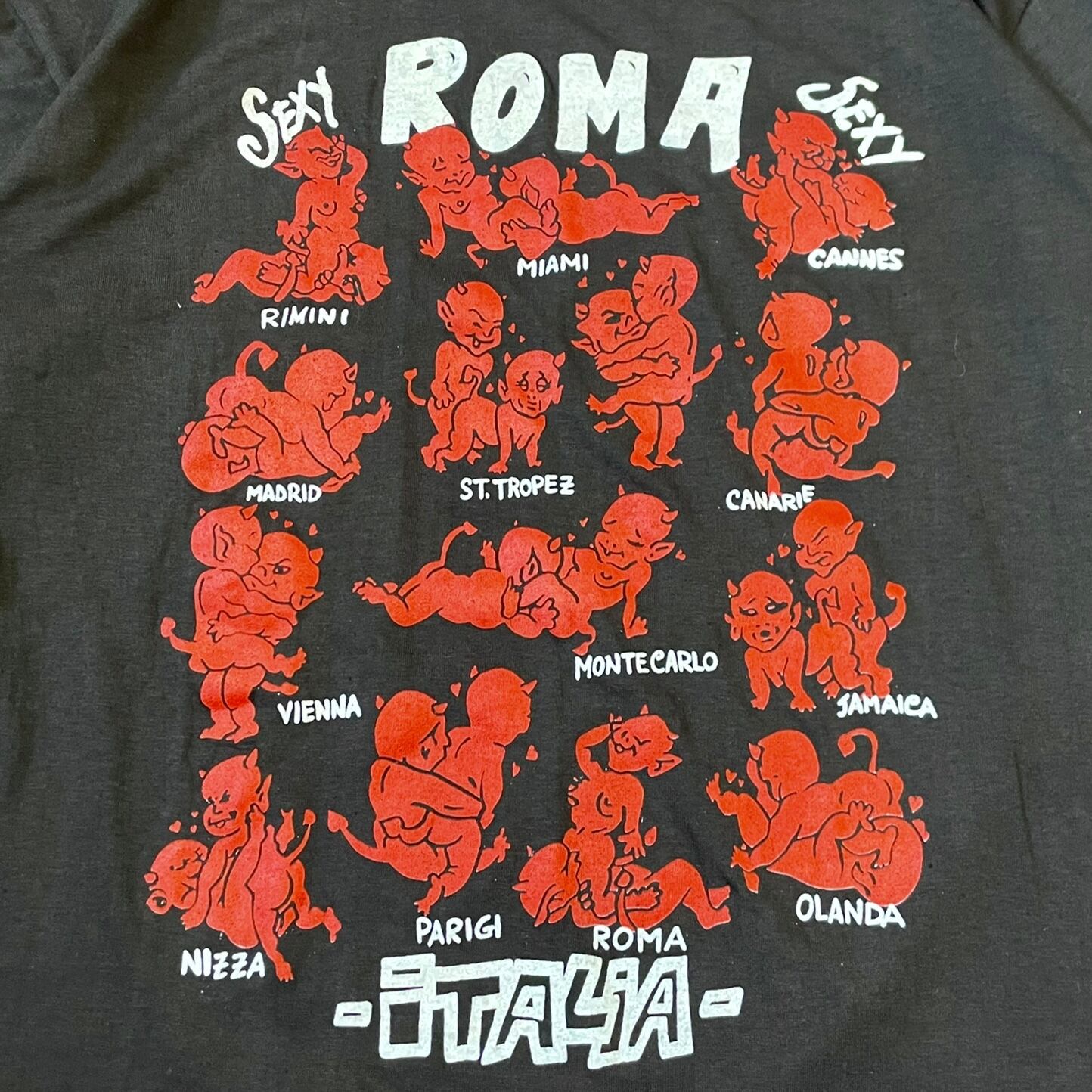 小悪魔らが様々な体位で戯れているユーモラスなデザイン。