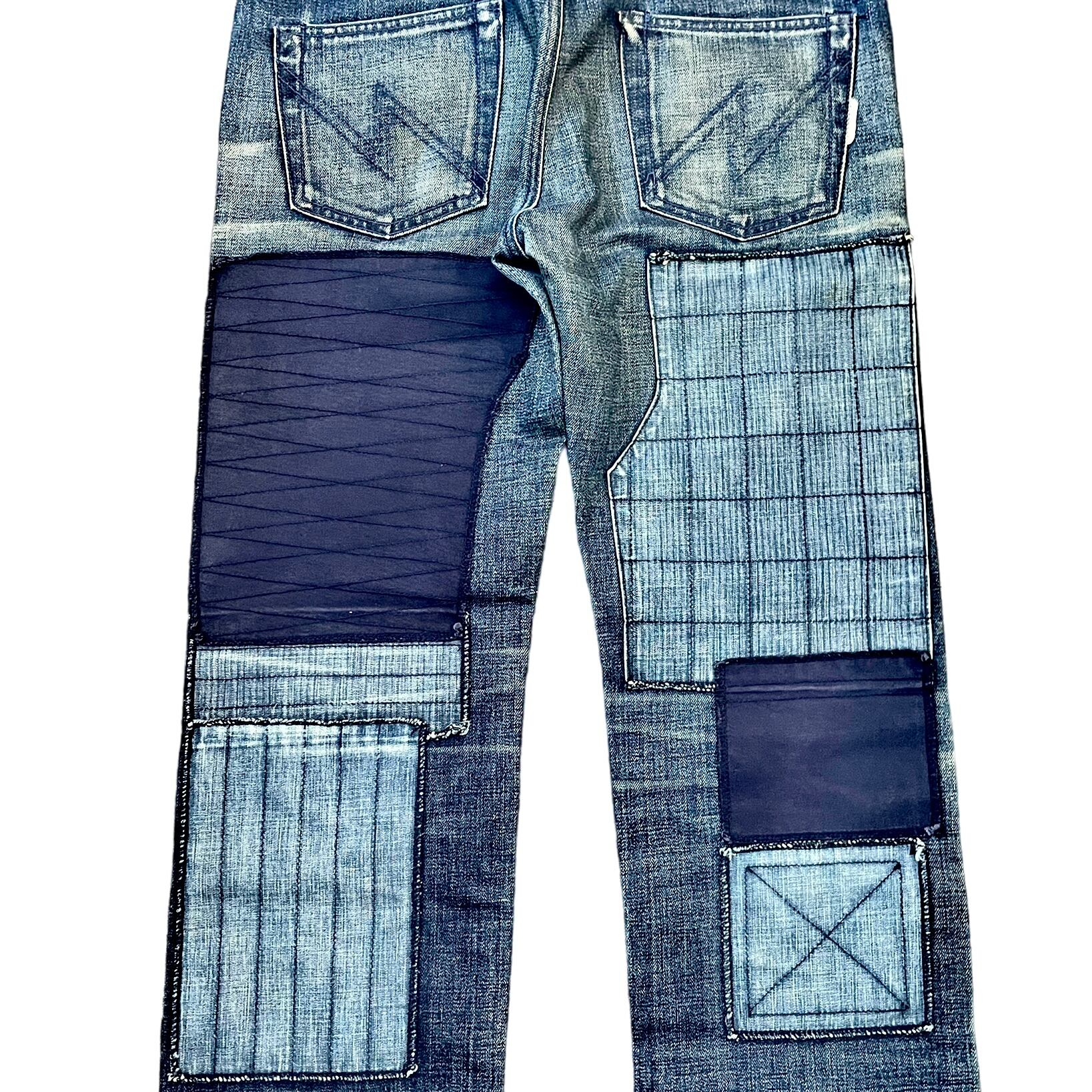 ネイバーフッドの異生地がパッチワークされた雰囲気の良いデニム。