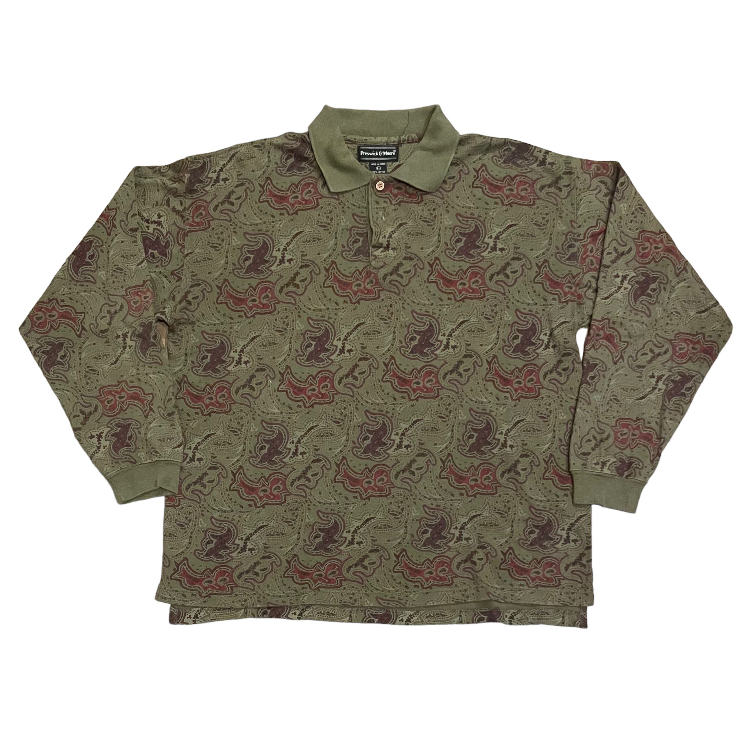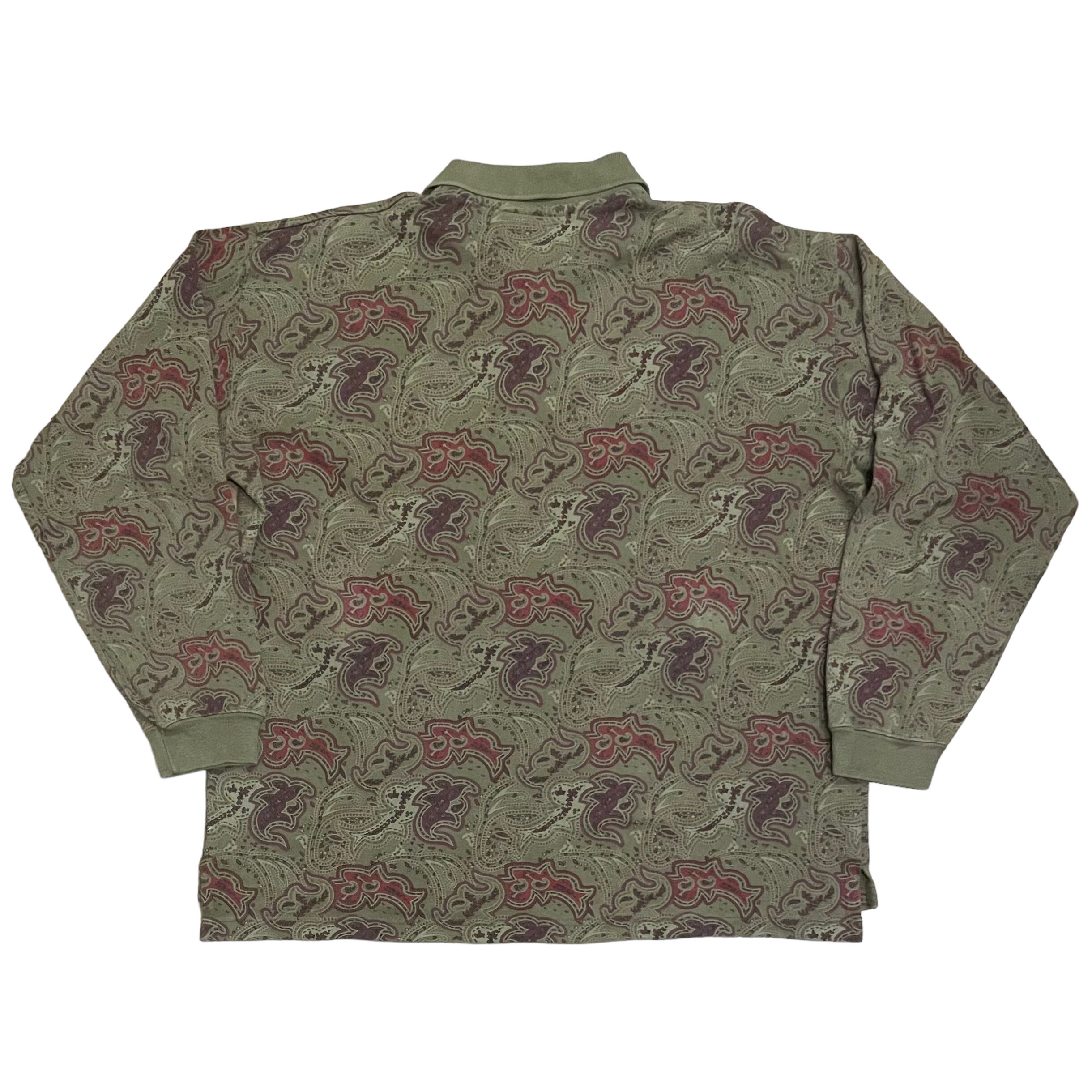 90s paisley pattern L/S polo shirt