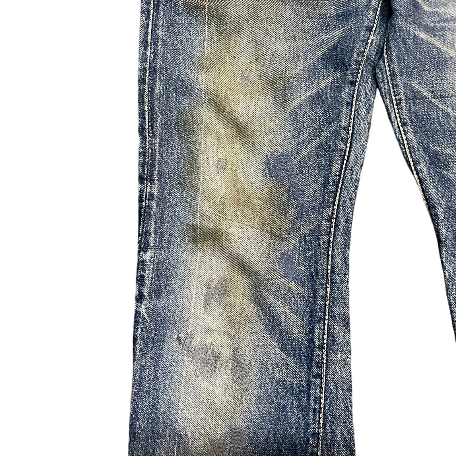 タタキ、汚れ、捻れ、プリント等凝った加工が施されたUNDERCOVERのデニム。