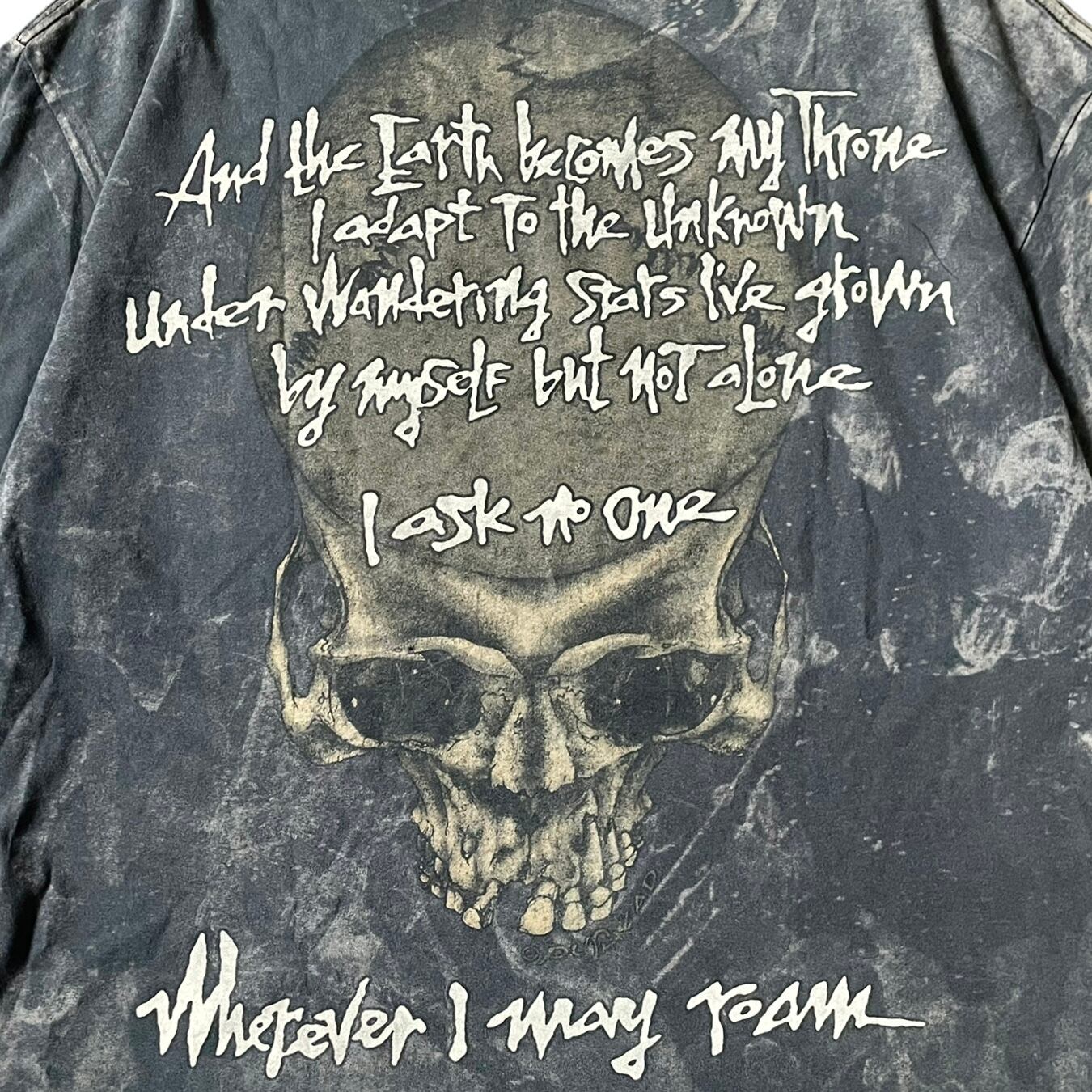 タイダイ染めが施されたボディにプリントしたメタリカのTシャツ。
