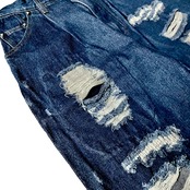 ワールドワイドラブのダメージ加工バギーデニムパンツ。